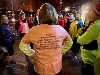 So lace up those old shoes and come & run with us! Shape or level of fitness doesn't matter, everyone is welcome and you'll find slow walkers as well as fast sprinters and marathon runners among us at any age from about 18 to 80.