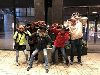 The Stockholm Underground H3 meet every Wednesday night and the Absolut H3, every second Saturday afternoon all year around come rain or shine (or snow). Runs are usually around 6-8 km with a shorter trail of 3-5 km for walkers. Either way, they last for about an hour with frequent regroupings and liquid refreshments along the way and are followed by a social gathering with the possibility to eat and drink some more afterwards.